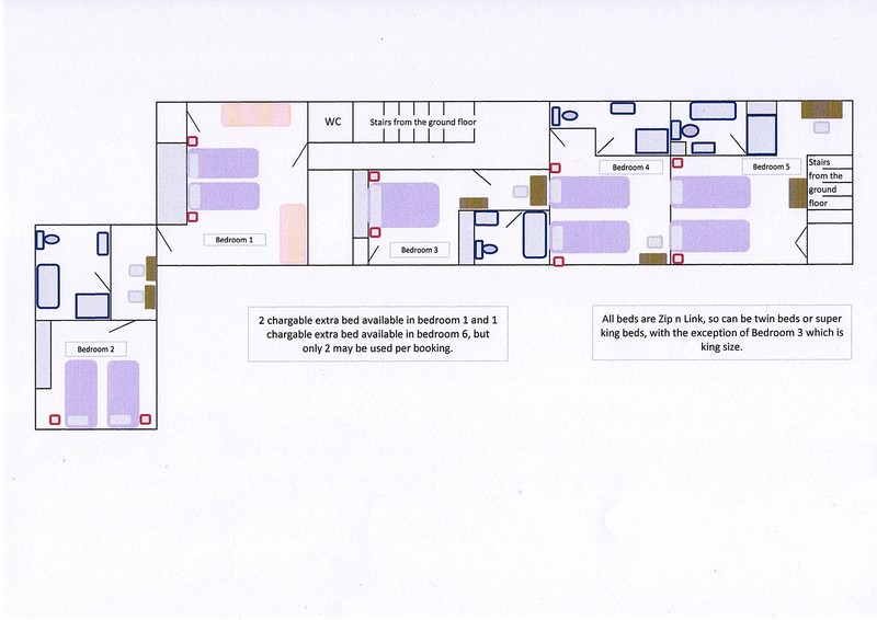 This room gives access to Bedroom 2, and both rooms share a dressing room and a bathroom with a shower and a free standing bath.